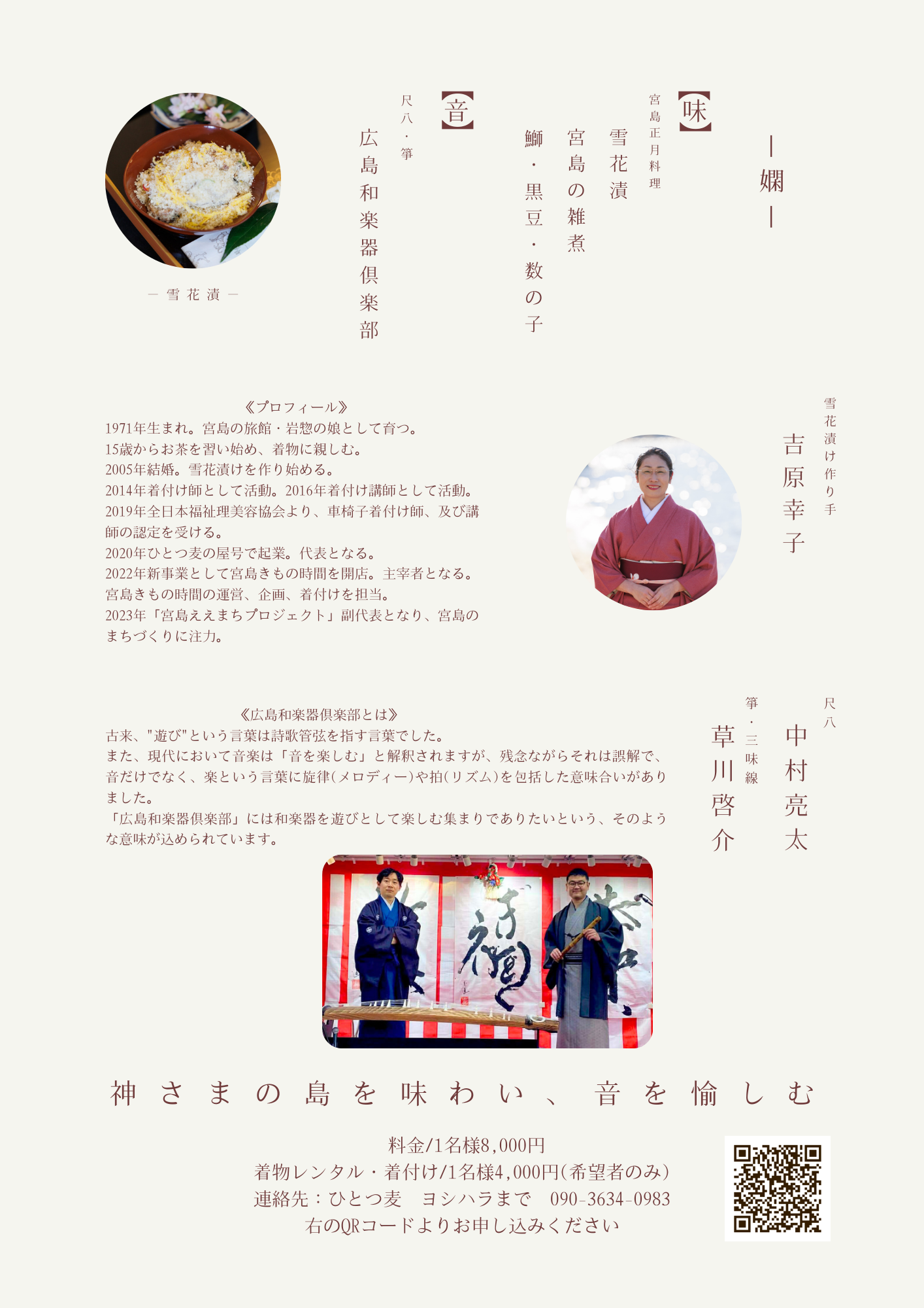 連絡先:宮島きもの時間 吉原まで 090-3634-0983